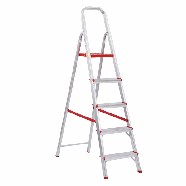 É uma escada portátil e voltada para o uso doméstico. Pode alcançar até 1,56 cm de altura que facilita e traz mais segurança na utilização do seu último degrau e suporta pesos de até 120 Kg. Ela tem os pés revestidos com emborrachamento eficiente contra deslizes e movimentos repentinos. Também vem equipada com degraus antiderrapantes que impedem acidentes enquanto você escala. A escada é feita de alumínio leve que facilita o manuseio. Também é especialmente eficaz contra corrosão e oxidação. O alumínio torna a escada 100% reciclável. O produto ocupa pouco espaço para uso sem perder os atributos de segurança e praticidade.